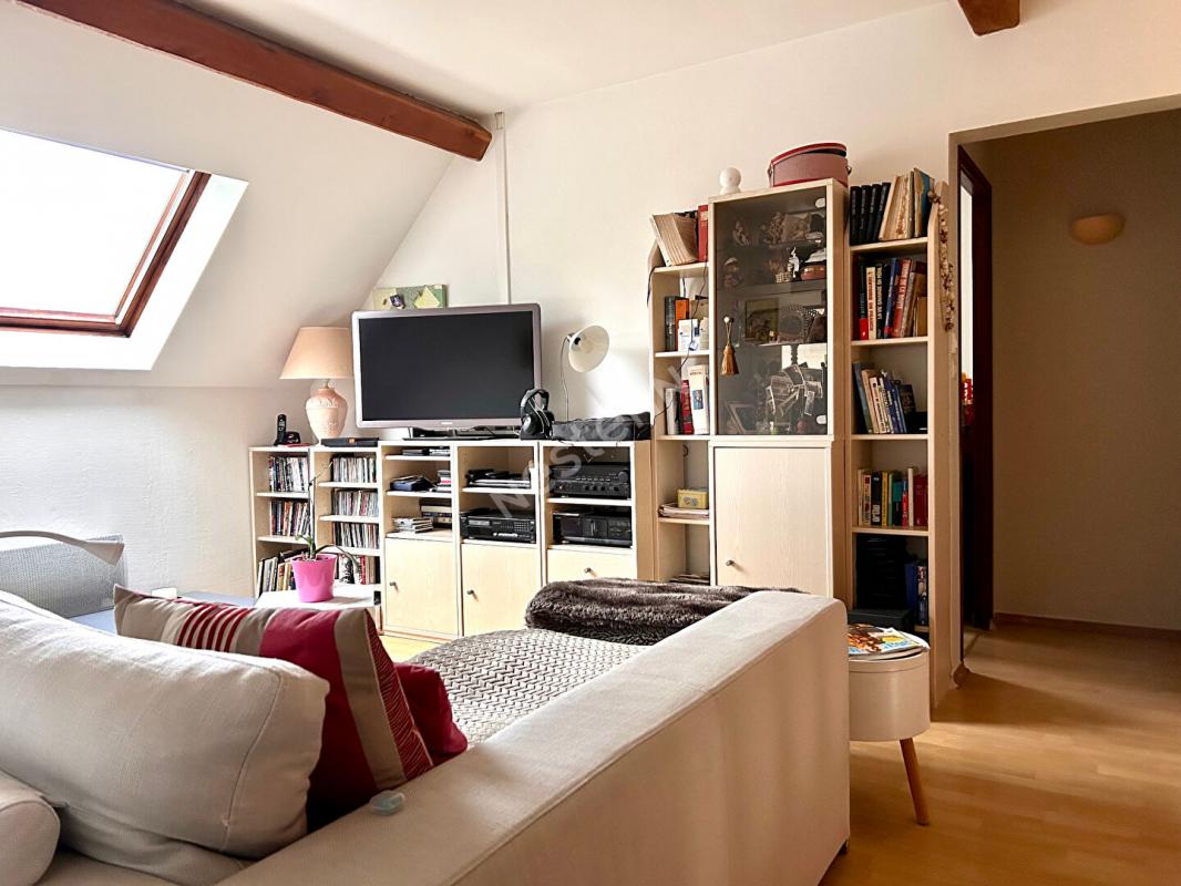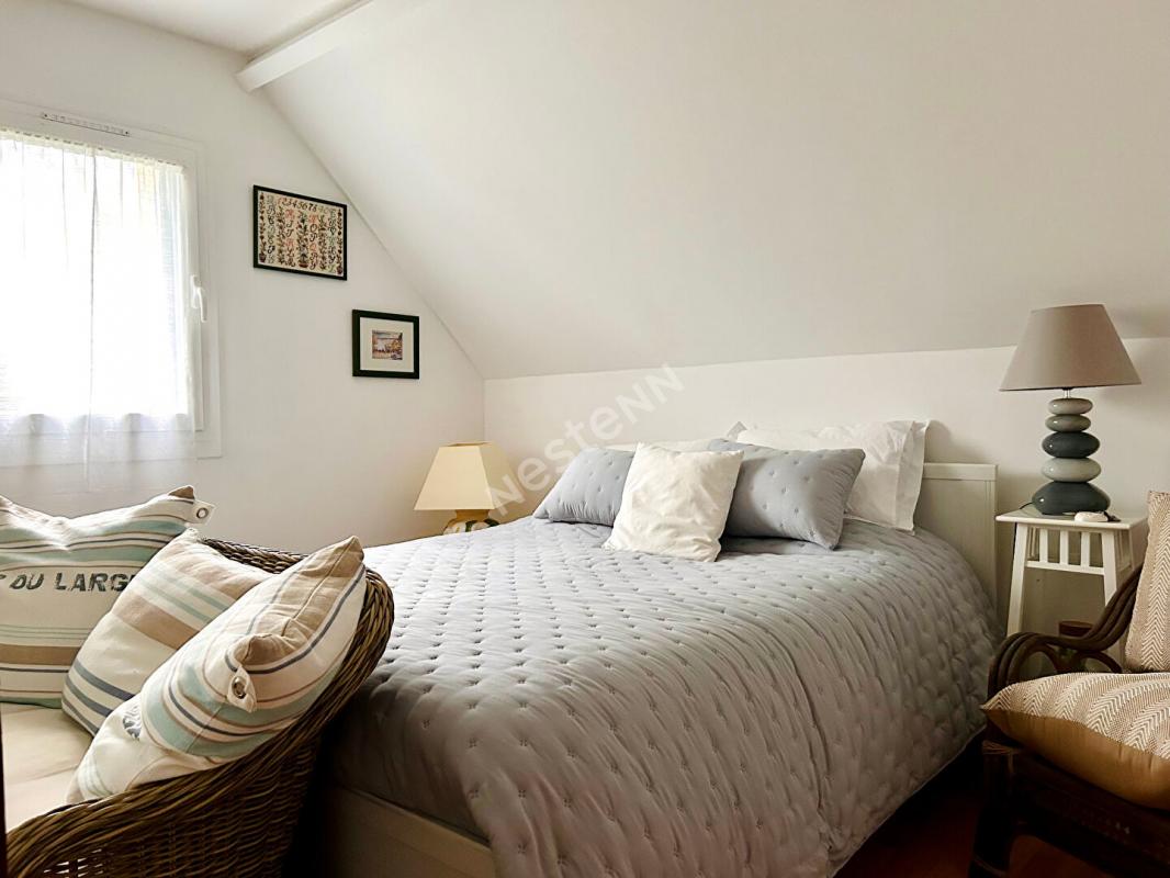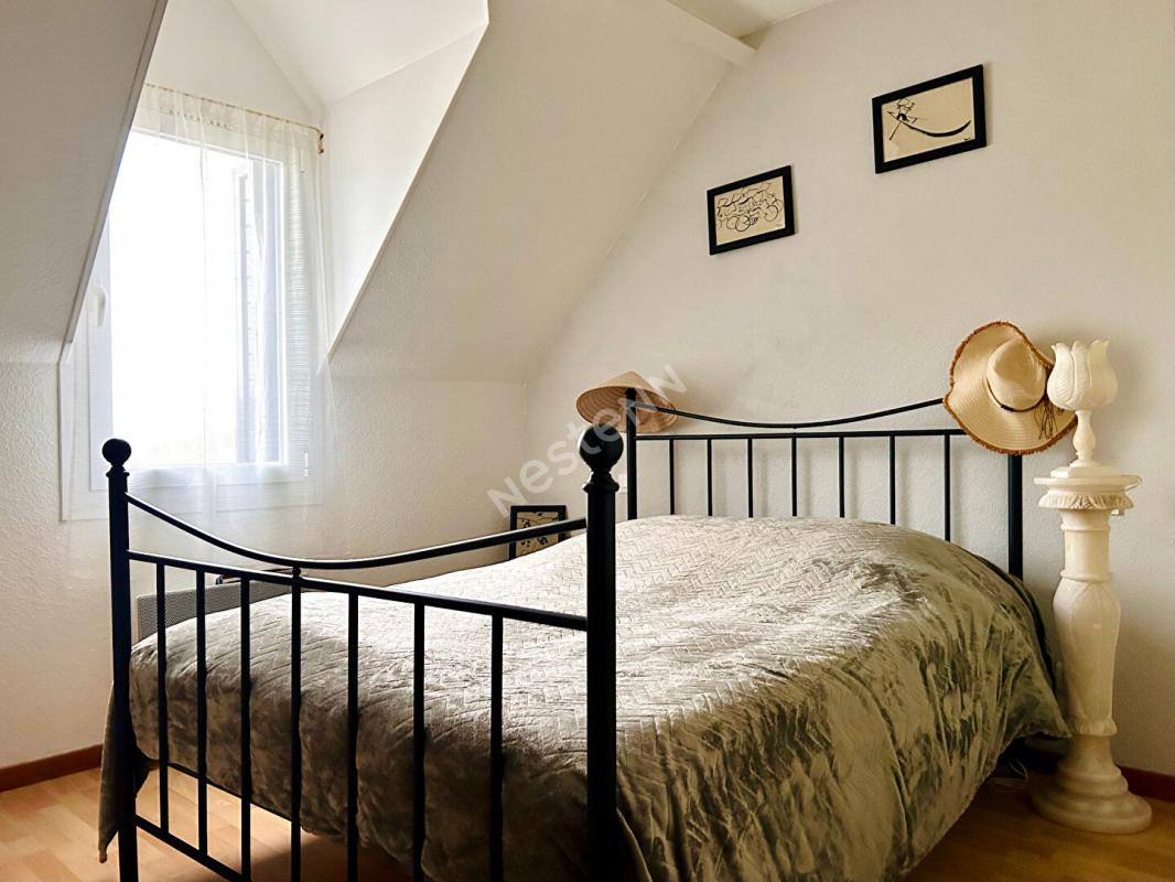 A l'étage, un grand palier aménagé en salon cosy dessert trois chambres, dont deux avec placards, ainsi qu'une salle d'eau.
