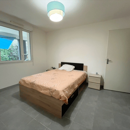 Pour la partie nuit, vous disposerez d'une grande chambre avec placards de 13m2, d'une salle. d'eau avec douche et d'un WC séparé.