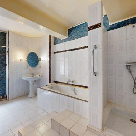 Au 1er étage un palier dessert une grande chambre, salle de bain et chaufferie.