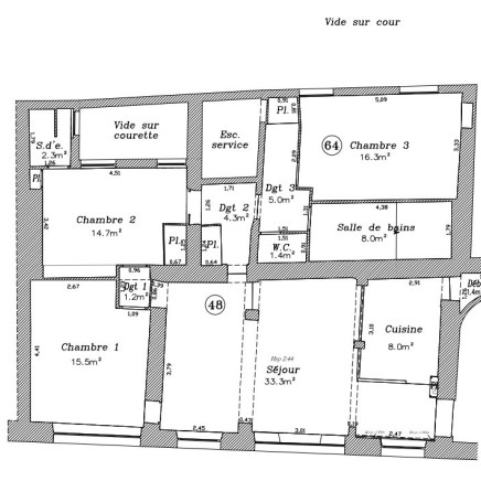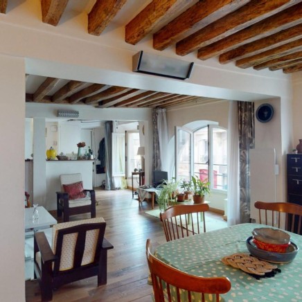 Le bien dispose d'un séjour agréable de 33 m², avec 3 fenêtres en double-vitrage, orienté sud-ouest, donnant sur une rue calme, à sens unique. La cuisine américaine, aménagée et équipée, constitue un atout pour ceux qui recherchent un espace pratique et convivial, idéal pour recevoir.Il comprend également trois chambres, dont 2 sur cour, très calme, une salle de bains, une salle d'eau, ainsi que deux WC, dont un séparé. + Une grand cave (6 m²), bien pratique.