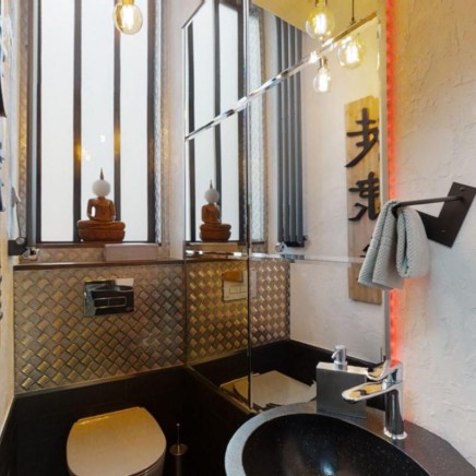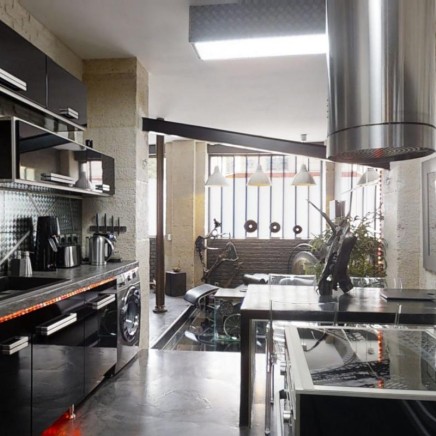 De style industriel et réalisé avec des équipements et des matériaux haut de gamme alliant Pierre de taille, Inox, Verre et Béton ciré.