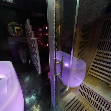2 planchers de verre laissent apparaître au Sous/sol une grande salle de musculation (possible de la transformer en 2ème chambre, plan déjà prévu), avec son tapis de course professionnel, une grande douche à l'italienne, un sauna et une baignoire lumineuse.