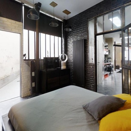 Entre Les Buttes Chaumont, le Canal St Martin et Belleville, superbe Loft d'artiste (style New Yorkais), de 87 m² au sol (62,52 m² Carrez + sous-sol aménagé de 23,15 m²), vendu en l'état, superbement meublé et équipé (SAUNA, matériel de musculation, etc...), comprenant un bel espace de vie (26 m²), prolongé par une cuisine ouverte dînatoire, une chambre spacieuse (22,47 m²), avec dressing et accès à la cour commune à usage quasi-exclusif (très agréable dès qu'il fait beau).