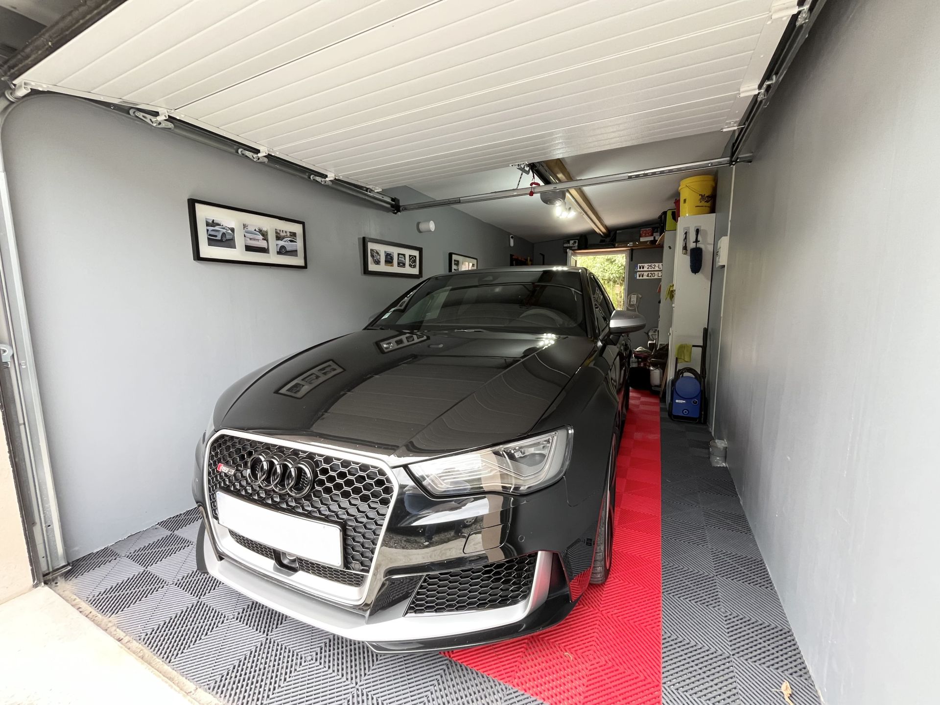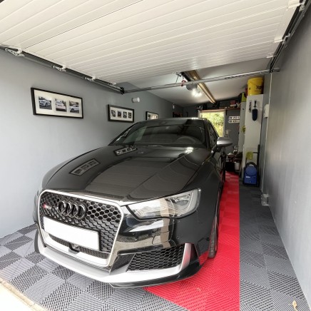 Cette maison dispose d'un garage isolé avec porte de service ainsi que de quatre places de parking.