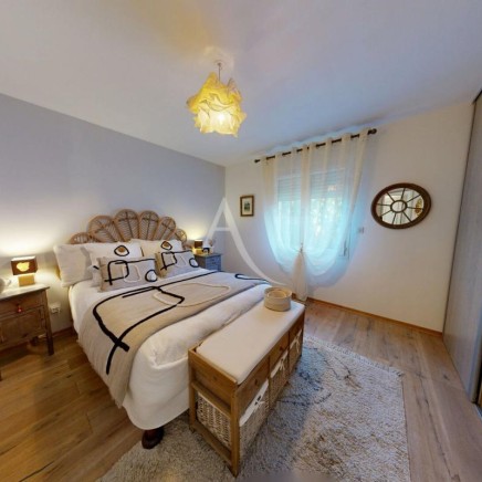 Elle se compose d'une entrée desservant un beau séjour lumineux de plus de 40 m² avec baies vitrées à galandage, d'une véranda, d'une cuisine équipée, de 3 chambres, d'une salle d'eau et WC indépendant..