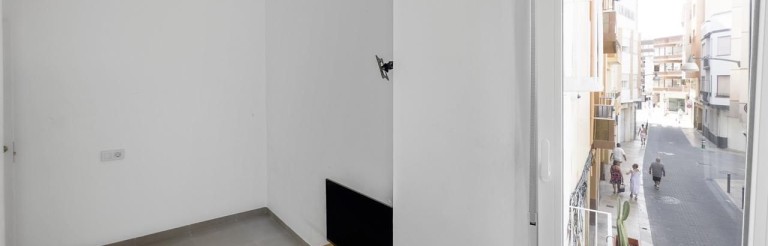 Carpintería: Exterior de aluminio con doble acristalamiento. Interior lacada en blanco, armarios empotrados forrados y puerta principal de seguridad con cerradura antibumping.